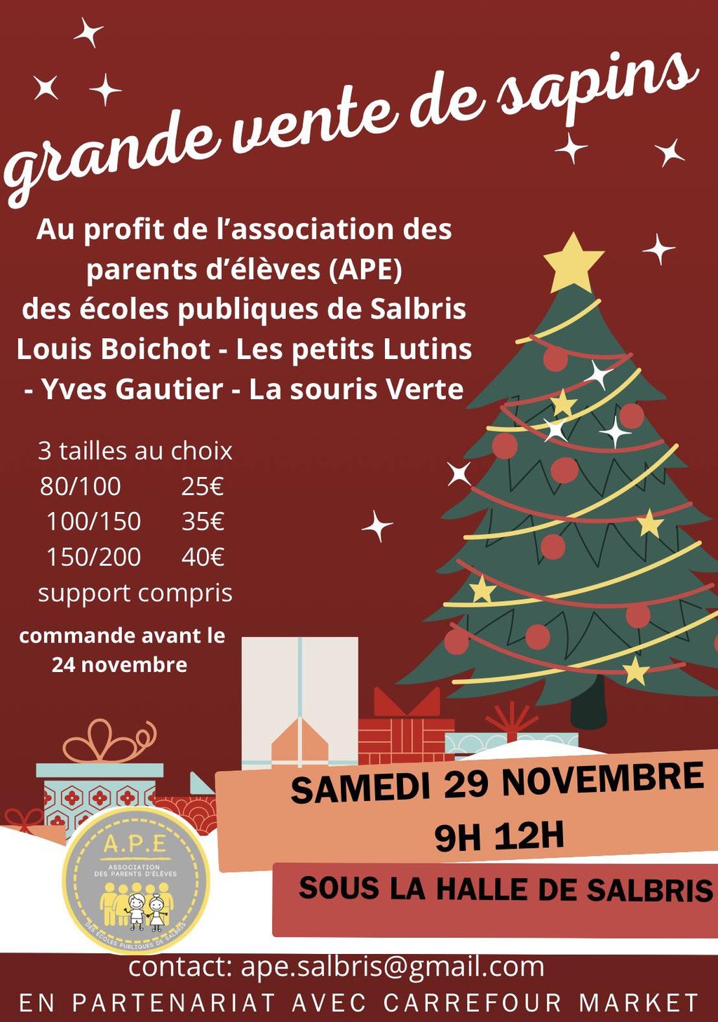 Vente de sapin au profit de l'Association des parents d'élèves (APE)