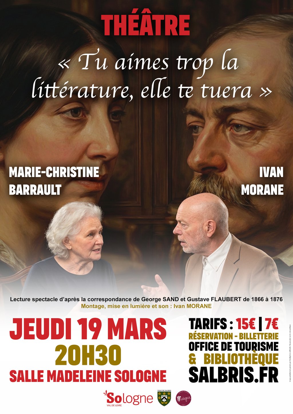 La Ville de Salbris accueille une lecture-spectacle exceptionnelle consacrée à la correspondance entre George Sand et Gustave Flaubert, deux figures majeures de la littérature française.