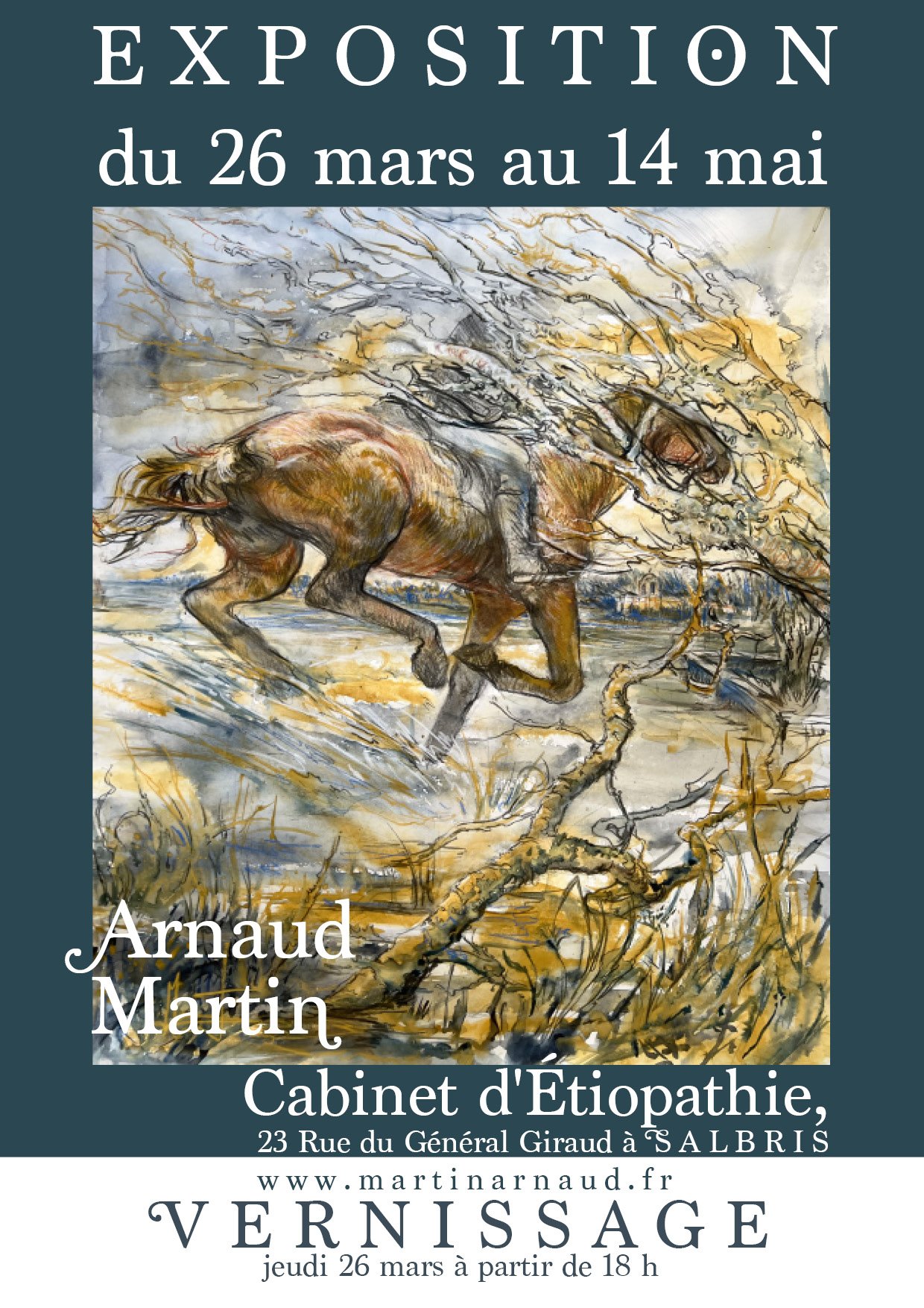 Du 26 mars au 14 mai, l’artiste Arnaud Martin propose une exposition de ses œuvres à Salbris, au cabinet d’étiopathie situé 23 rue du Général Giraud.