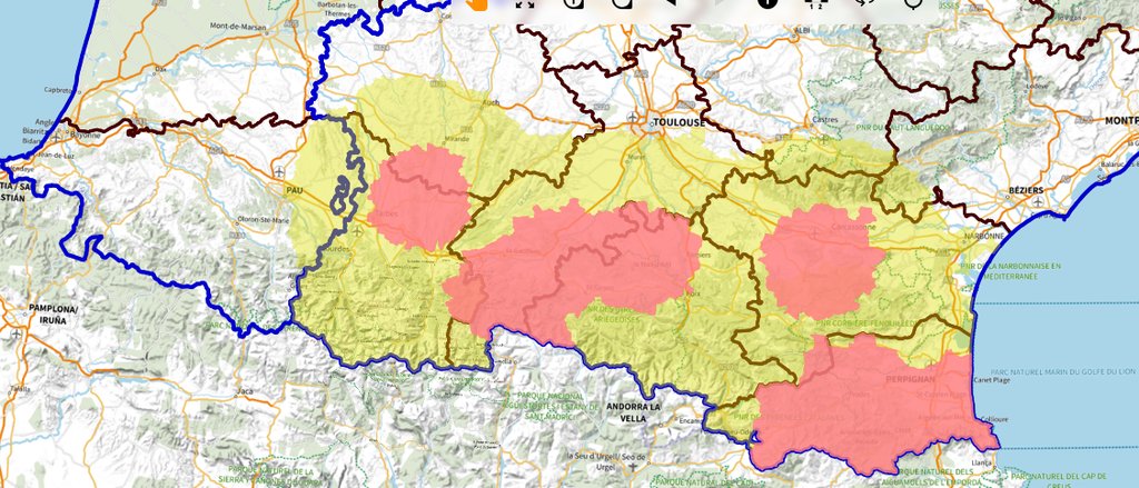 Vous trouverez ci-dessous une représentation du zonage réglementé en cours sur l'Occitanie. La vaccination des troupeaux est engagée dans toutes ces zones et elle a été étendue aux départements des Pyrénées Atlantiques, Landes, Gers , Hérault et Tarn pour créer un cordon sanitaire.