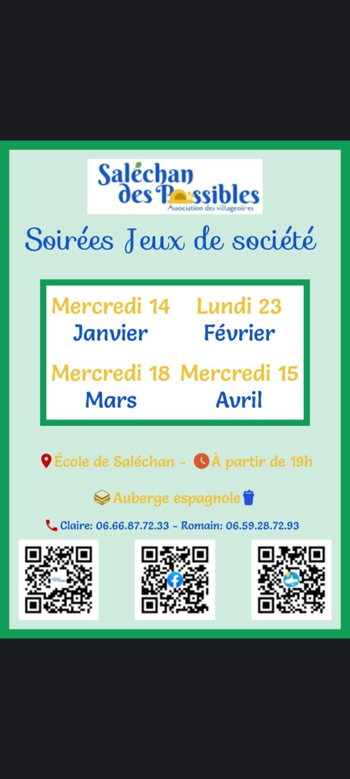Soirée jeux à l'école de Saléchan.