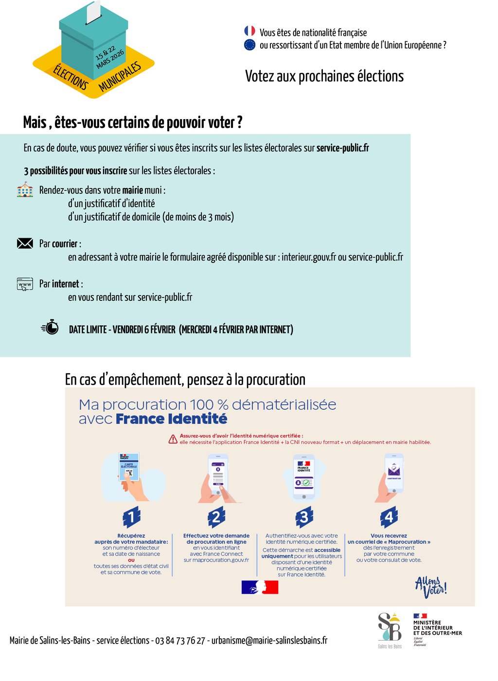 - vérifiez que vous êtes bien inscrits sur les listes électorales ( service-public.fr)
