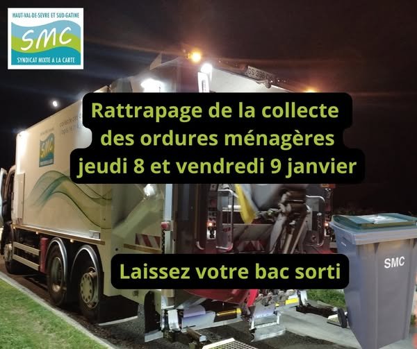 Le service de collecte reprendra jeudi matin avec une adaptation des tournées pour collecter les ordures ménagères (bac à couvercle vert) en priorité. Un rattrapage aura également lieu vendredi.