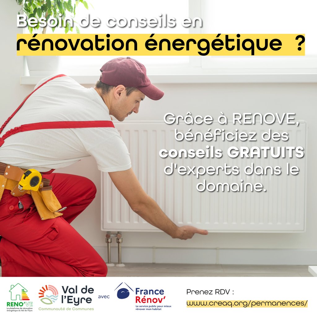 Grâce à RENOVE, la plateforme de rénovation énergétique de la CDC, parlez en avec les experts du Creaq lors des permanences de proximité organisées sur le territoire ! Leurs conseils sont 100% gratuits !