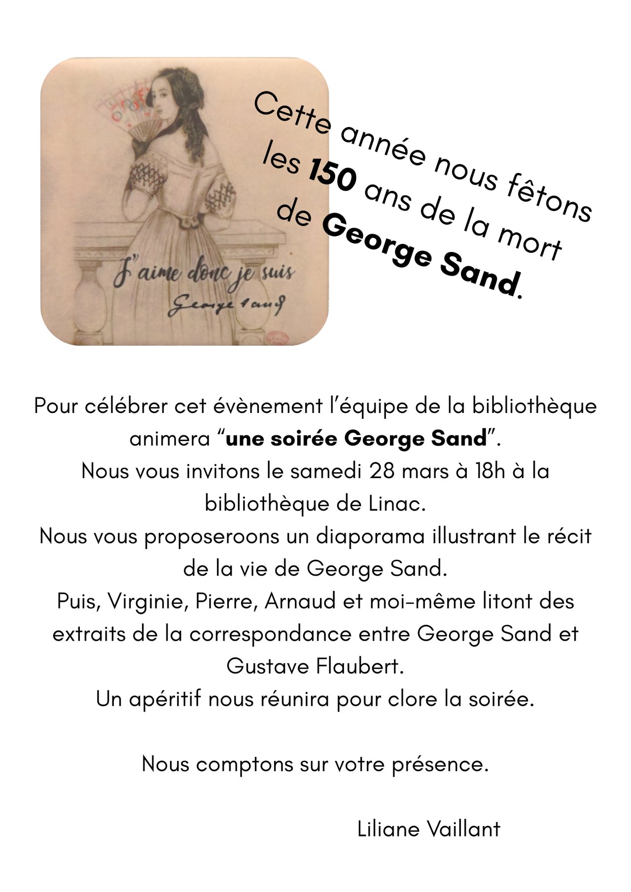 La bibliothèque de Linac organise une "Soirée George Sand"