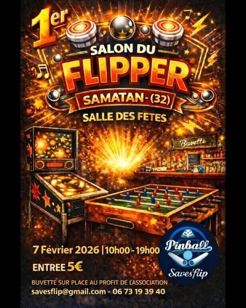 1er Salon du flipper, salle des fêtes à Samatan , de 10h à 19h. Un événement organisé par l’association Save’s Flip