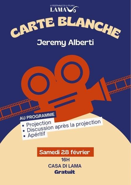 Le Festival du film de Lama vous invite à un moment privilégié autour du cinéma avec une Carte Blanche à Jérémy Alberti. Projection, échange avec le public à l’issue de la séance, puis un apéritif convivial pour prolonger la rencontre.