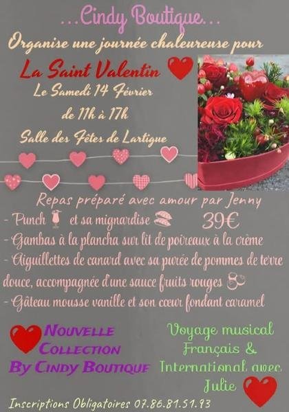 Le 14 février de 11h à 17h, la boutique de Saramon Cindy Boutique organise une journée chaleureuse en l'honneur de la Saint-Valentin à Lartigue.