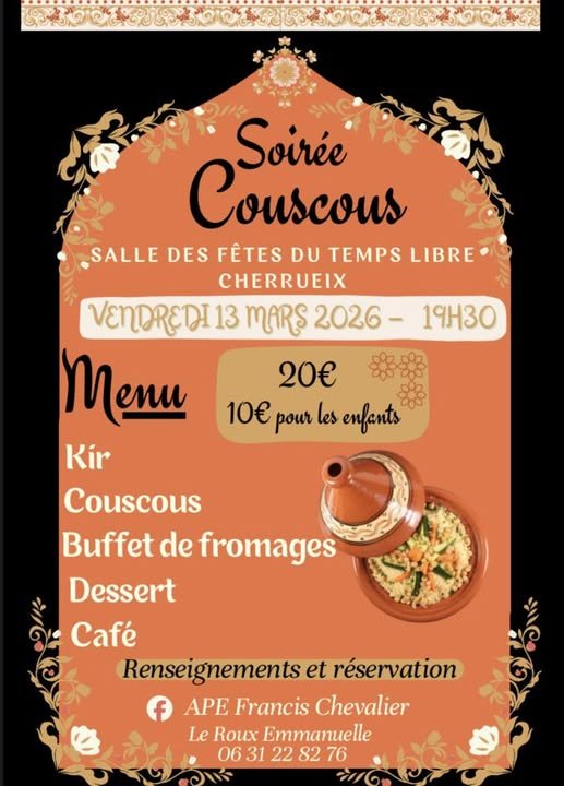 L’APE Francis Chevalier vous invite à une soirée conviviale autour d’un délicieux couscous