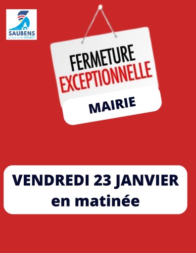 MAIRIE FERMETURE EXCEPTIONNELLE VENDREDI 23 JANVIER