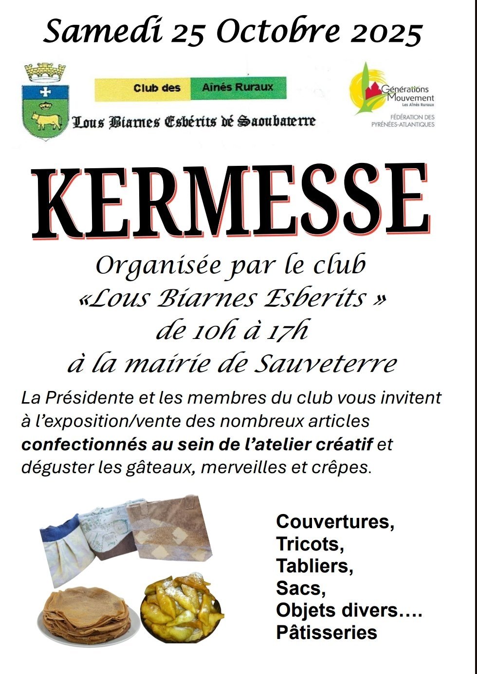 "Lous Biarnes Esberits" organise leu Kermesse ce samedi 25 octobre de 10h à 17h à la salle de la mairie.