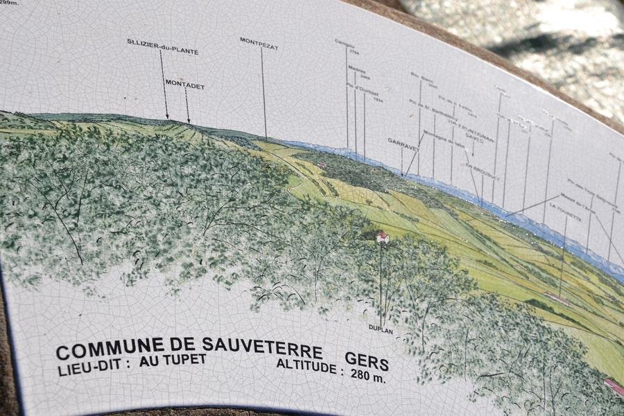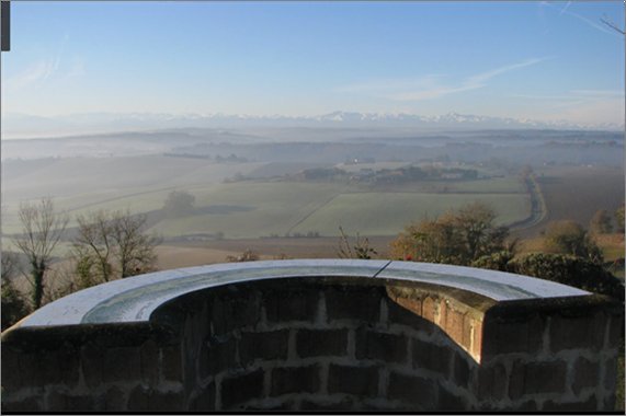 Découvrez depuis la table d’orientation à Sauveterre un spectacle magique avec au premier plan, la vallée de la Save et au second plan, la chaîne des Pyrénées.