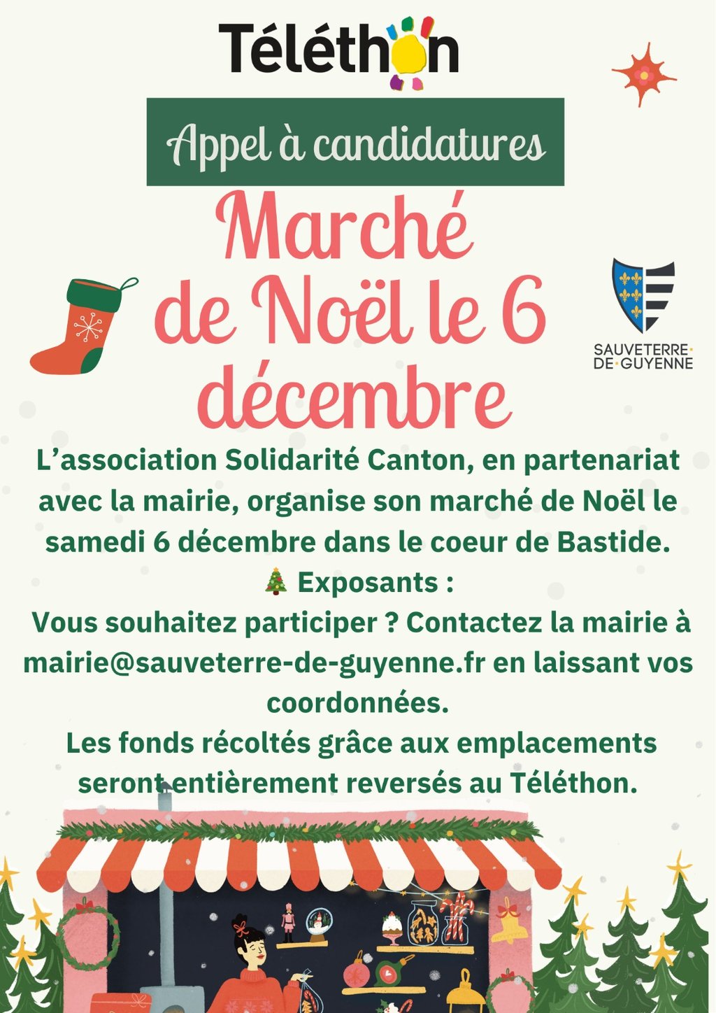 Solidarité Canton organise un marché de Noël le samedi 6 décembre à Sauveterre-de-Guyenne.