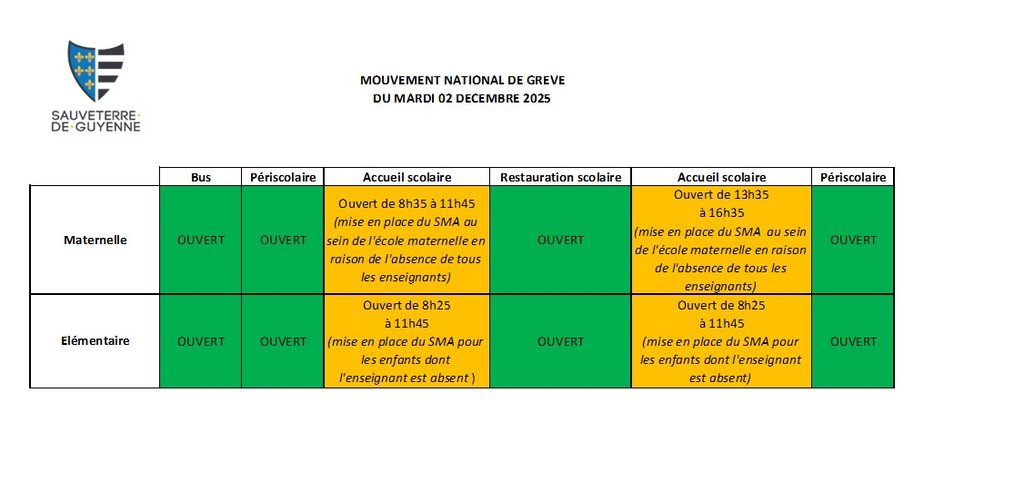 Les services de bus, d’accueil périscolaire et de restauration scolaire seront assurés. 🚌