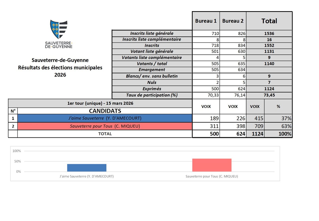 ÉLECTIONS MUNICIPALES – RÉSULTATS DU SCRUTIN À SAUVETERRE-DE-GUYENNE