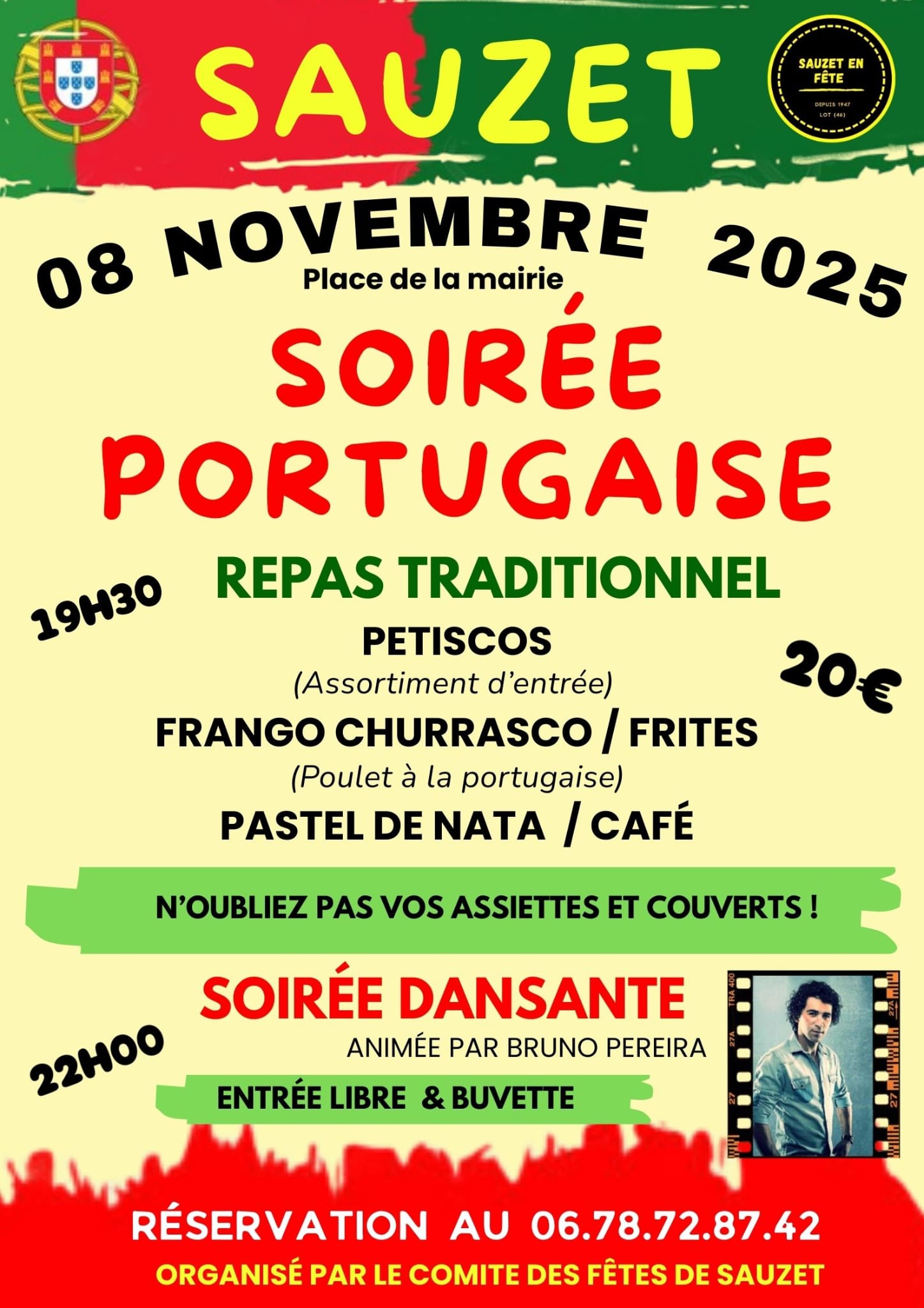 Le comité des fêtes organise une Soirée portugaise le samedi 08 novembre, place de la mairie à Sauzet.