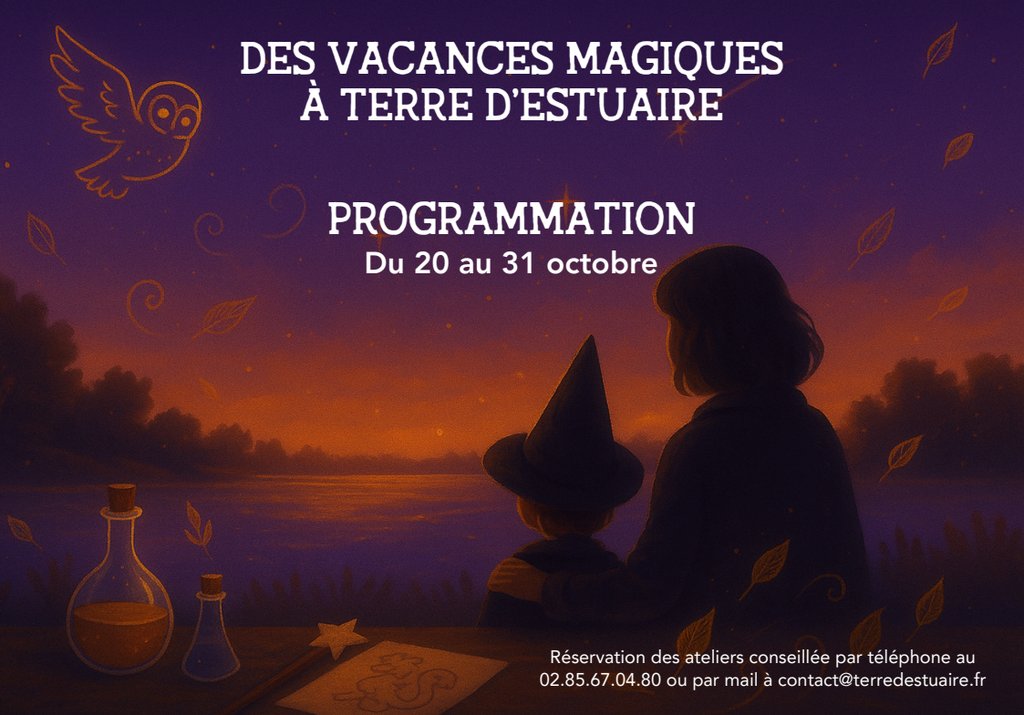 DĂ©couvrez la programmation complĂšte ici : https://www.ville-savenay.fr/se-divertir/agenda/programme-vacances-de-la-toussaint-terre-destuaireÂ
