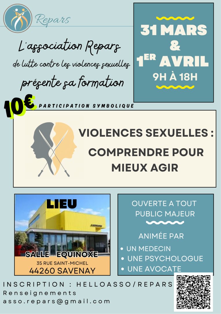 L'association Repars, qui lutte contre les violences sexuelles, sera présente à Savenay pour une formation ouverte à tous (public majeur).