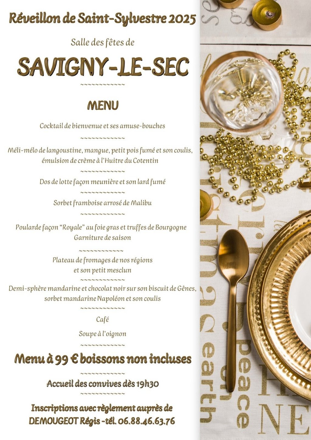 Le Comité des fêtes de Savigny-le-Sec vous propose un réveillon dansant pour la Saint Sylvestre.