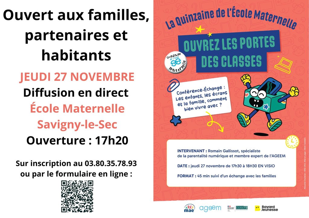 diffusée en direct à l'école maternelle de Savigny le Sec le jeudi 27 novembre à 17h30.