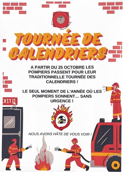 Comme chaque année, vos sapeurs-pompiers viendront prochainement à votre rencontre pour la traditionnelle tournée des calendriers.