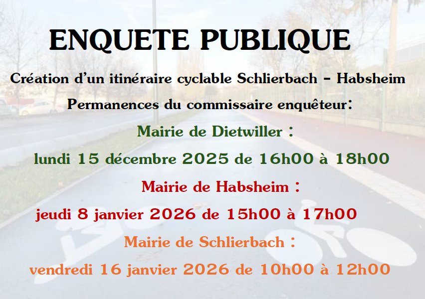 ENQUETE PUBLIQUE - CRÉATION ITINÉRAIRE CYCLABLE SCHLIERBACH-HABSHEIM