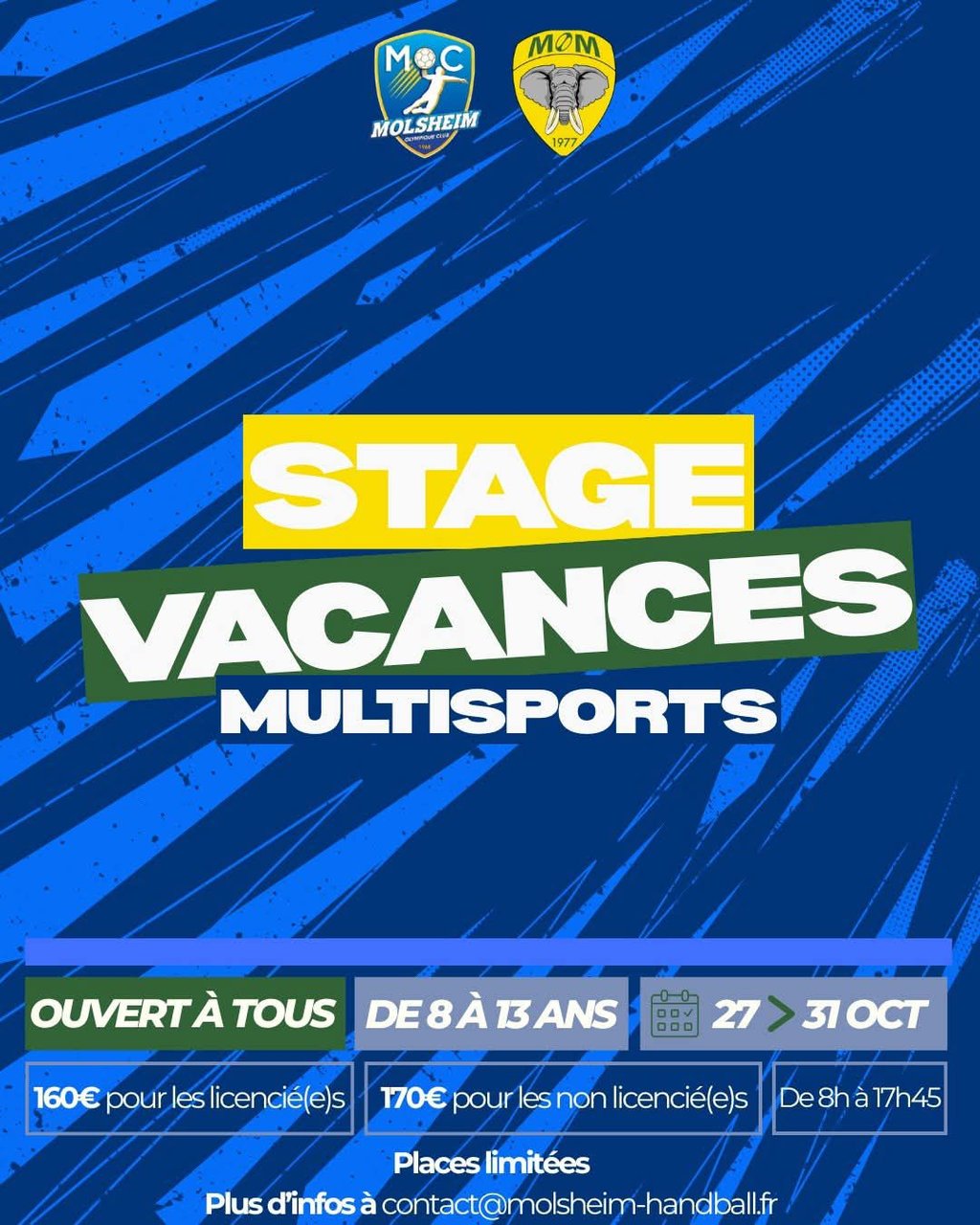 Le Molsheim Olympique Club Handball 🤾 et le Mutzig Ovalie Molsheim 🏉 s'associent pour vous proposer un stage multisport pendant les vacances de la Toussaint, 📅 du 27 au 31 octobre, ouvert à tous les enfants de 8 à 13 ans !
