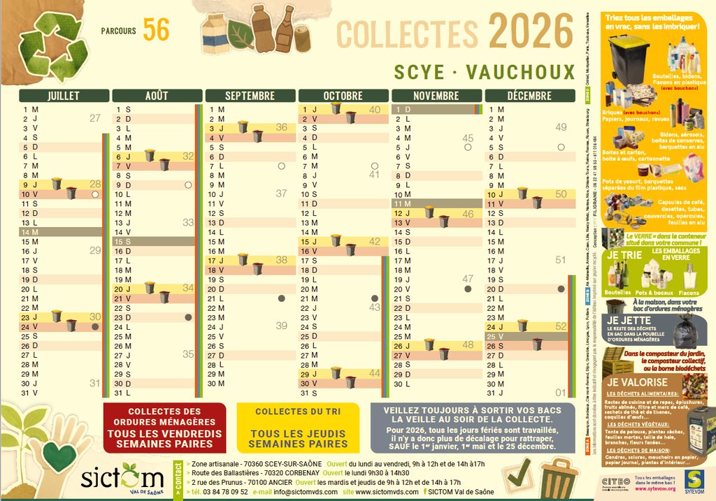 CALENDRIER DE COLLECTE DES ORDURES MÉNAGÈRES