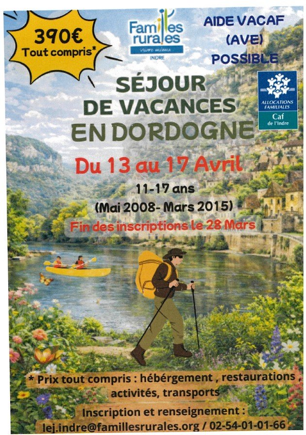 Renseignements au 02.54.01.01.66 ou lej.indre@famillesrurales.org