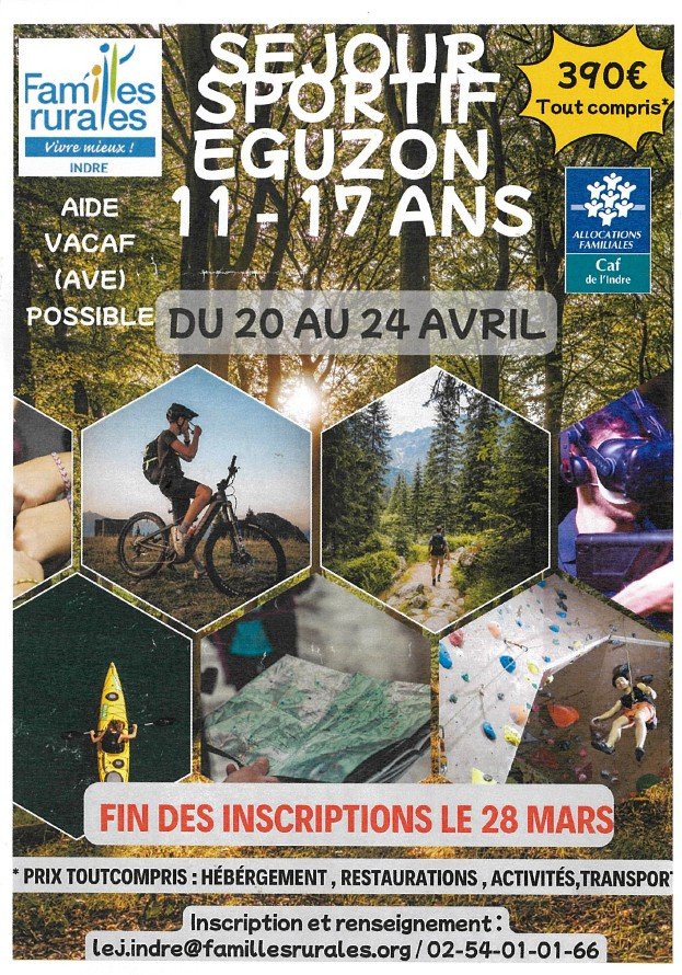 Renseignements au 02.54.01.01.66 ou lej.indre@famillesrurales.org