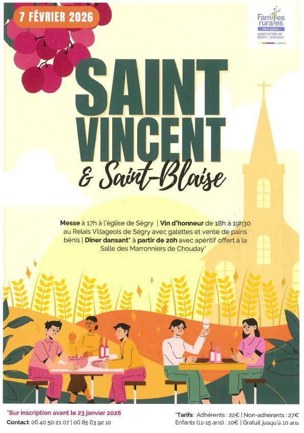 18h/19h30 : Vin d'honneur au Relais Villageois de Ségry avec galettes et vente de pains bénis