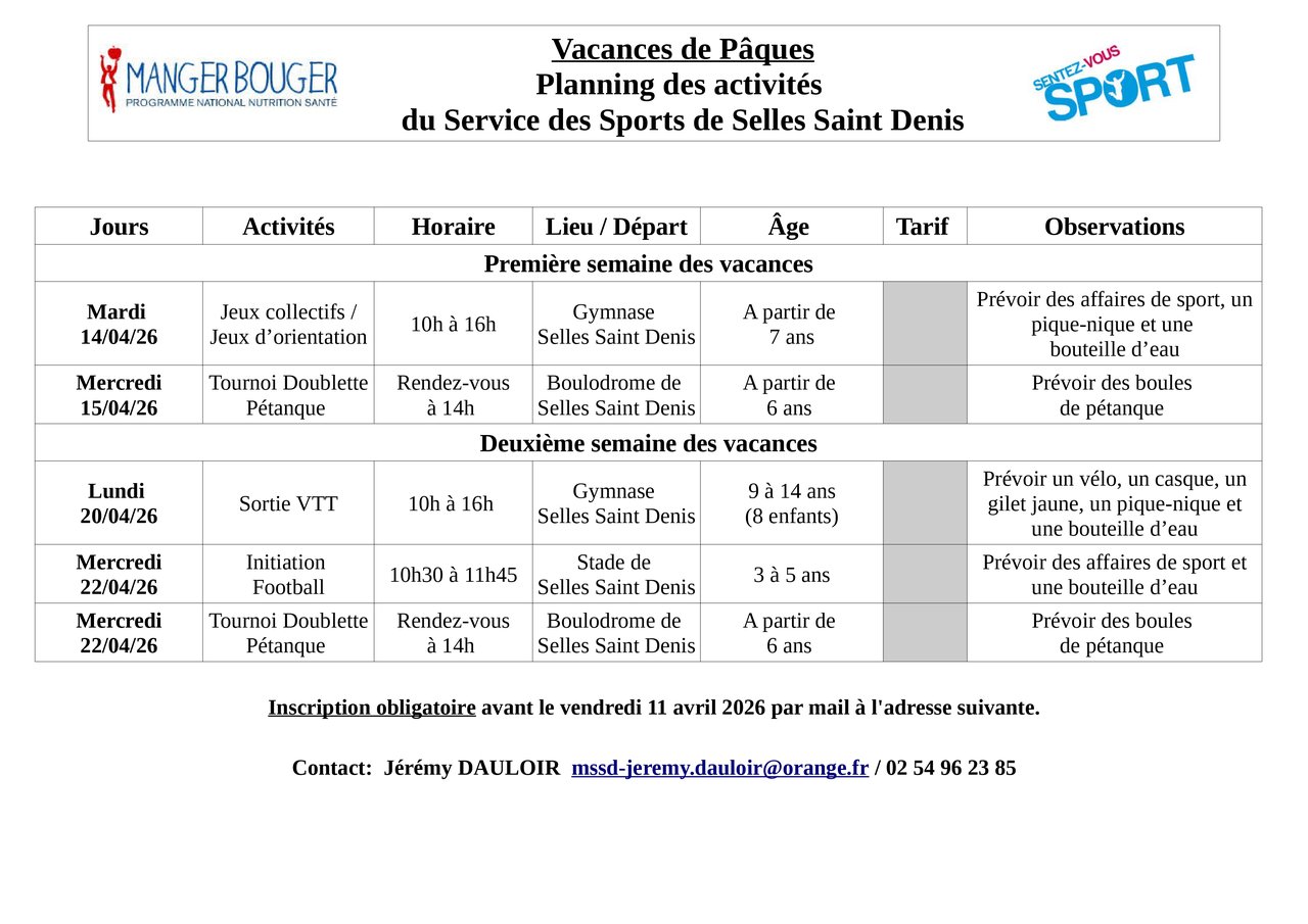 N'oubliez pas pour toutes les activités de vous inscrire !