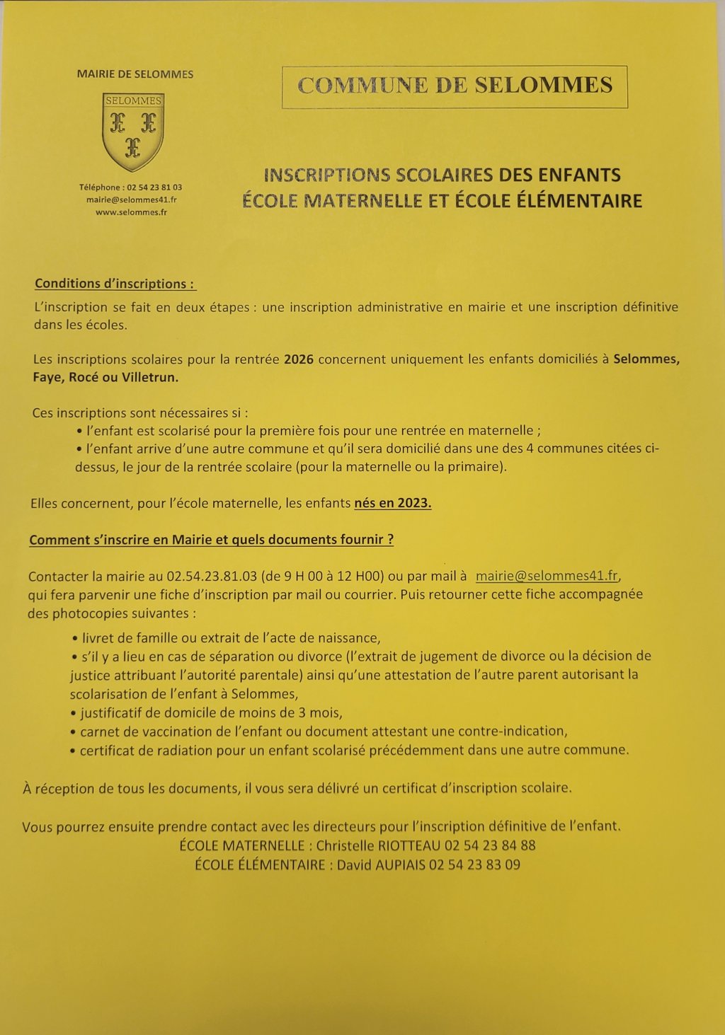 INSCRIPTIONS ÉCOLES MATERNELLE ET PRIMAIRE - ANNÉE SCOLAIRE 2026-2027