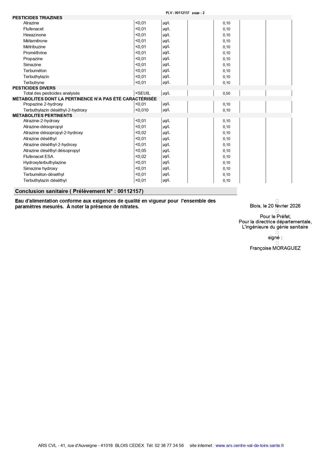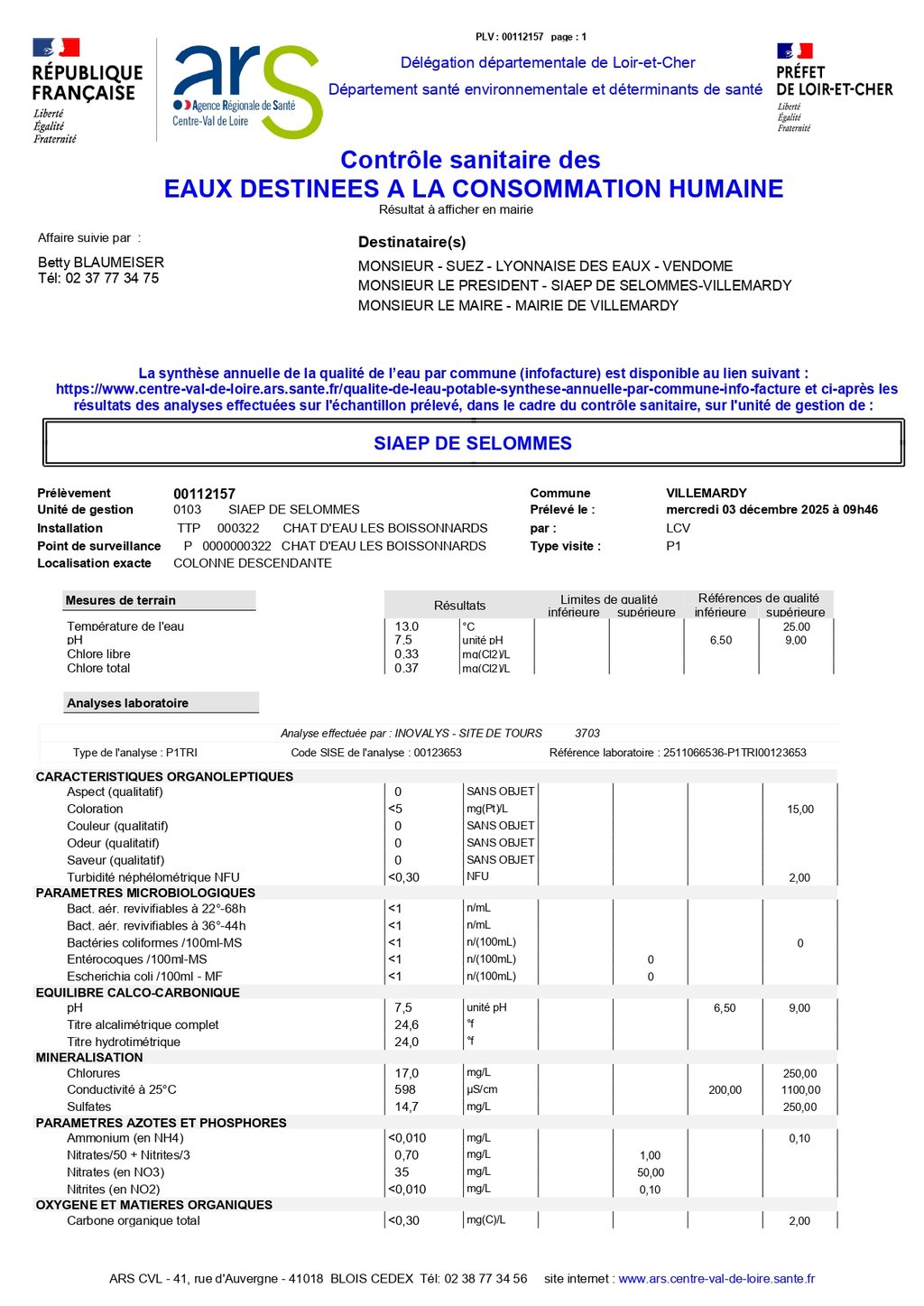 CONTRÔLE SANITAIRE DES EAUX DESTINÉES À LA CONSOMMATION HUMAINE
