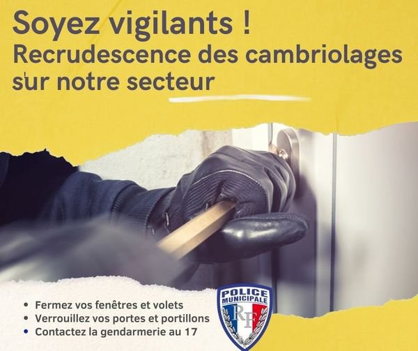 Soyez vigilants, une recrudescence des cambriolages sur le secteur est constatĂ©. đš