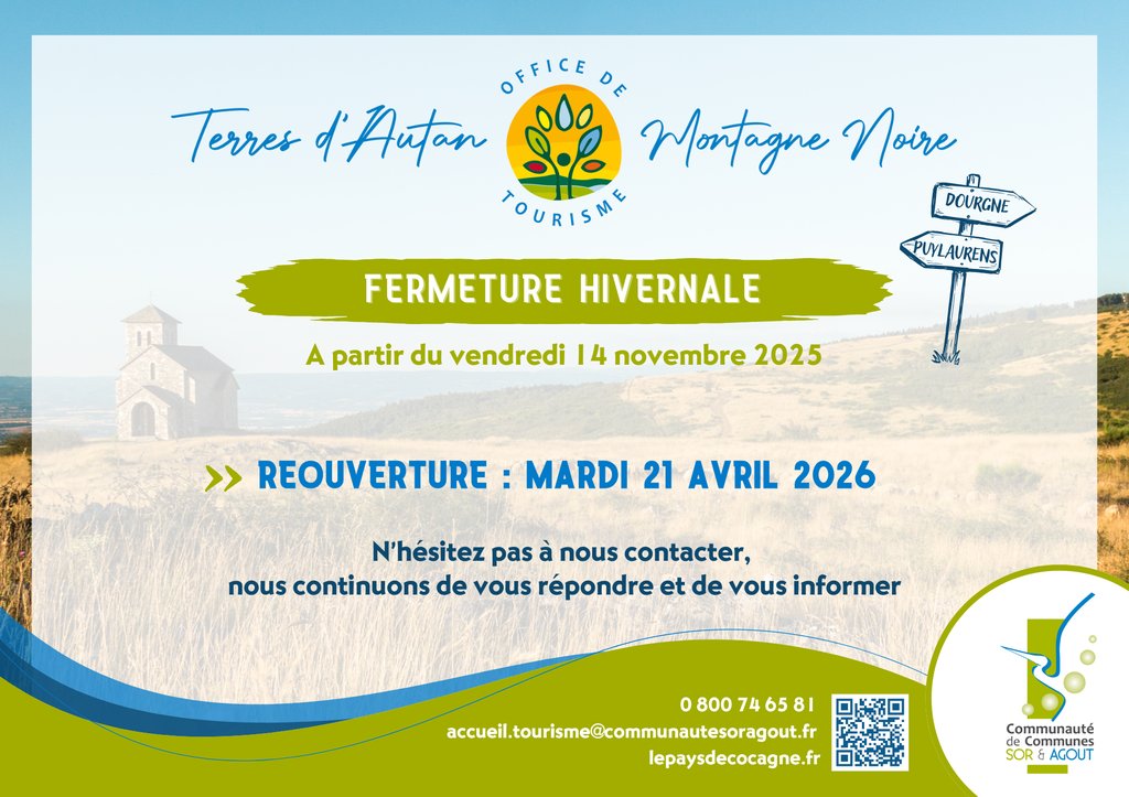 L'équipe de l'Office de Tourisme Terres d'Autan - Montagne Noire continue de vous répondre et de vous informer :
