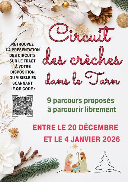 Pour préparer les fêtes de Noël, plusieurs parcours des crèches dans le Tarn vous sont proposés. Vous pourrez découvrir notre patrimoine au travers de 9 circuits qui au gré des paysages vous feront connaître nos villages et nos églises.