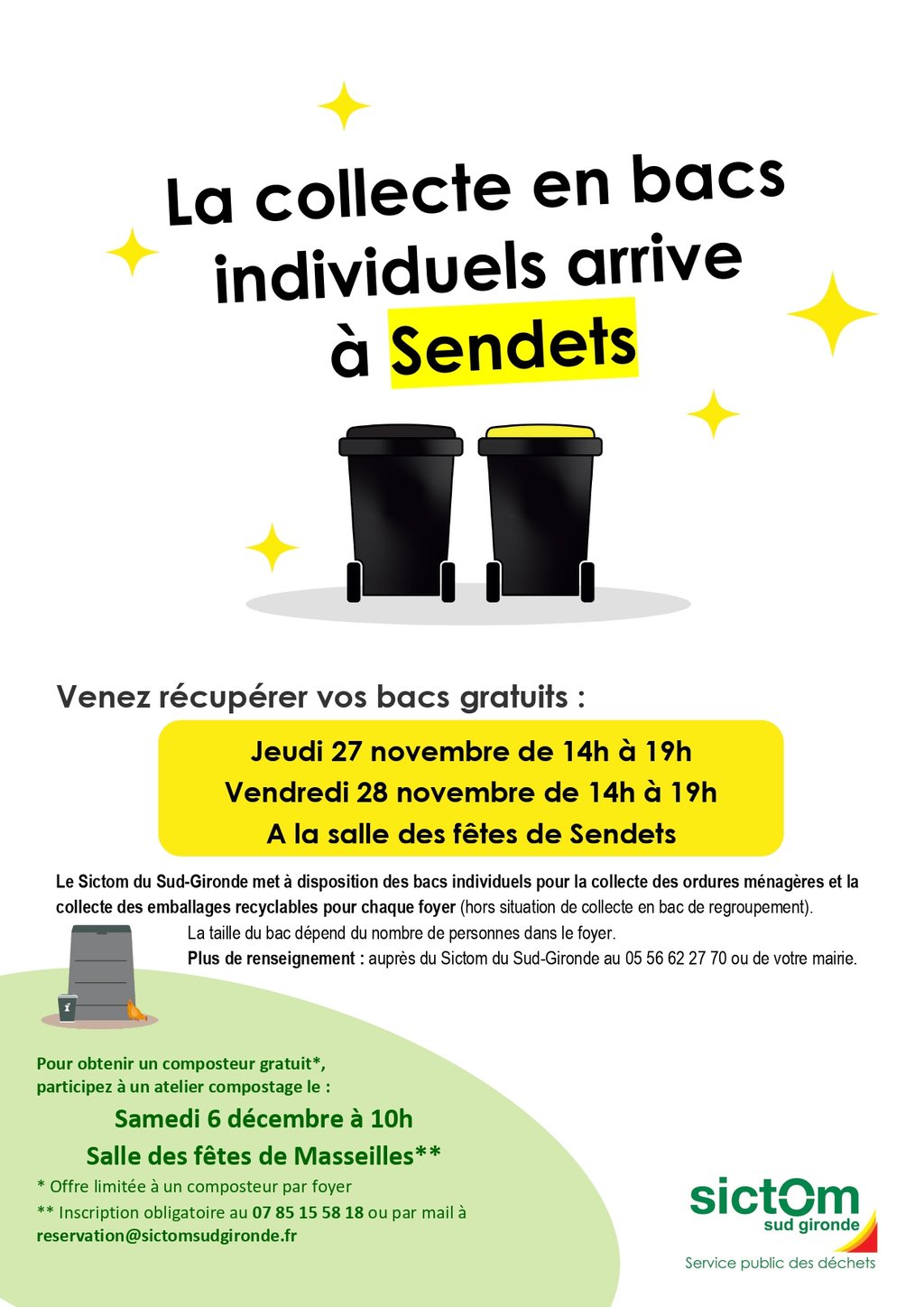 DISTRIBUTION DES BACS POUR LE NOUVEAU SCHÉMA DE COLLECTE DES ORDURES MÉNAGÈRES ET DES EMBALLAGES LES 27 ET 28 NOVEMBRE