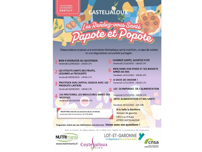 “Cuisinez santé, achetez futé”. Animation thématique sur la nutrition, un peu de cuisine et une dégustation sensorielle partagée. Programme animé par une diététicienne nutritionniste.