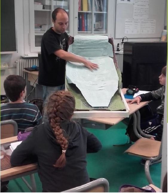 Les ateliers pédagogiques sont destinés à apporter aux enfants des connaissances sur la Terre en pratiquant diverses activités (moulages de fossiles, découverte des volcans, ...).