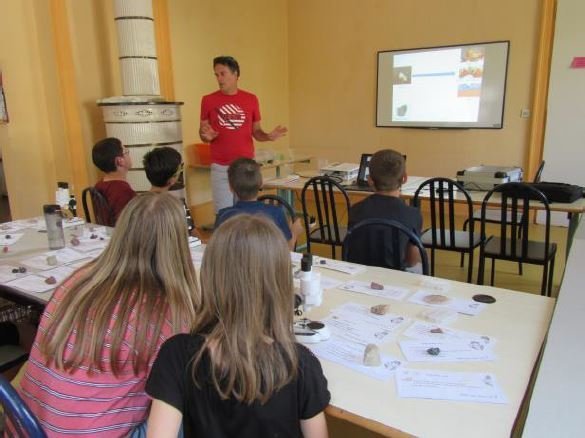 Les ateliers pédagogiques sont destinés à apporter aux enfants des connaissances sur la Terre en pratiquant diverses activités (moulages de fossiles, découverte des volcans, ...).