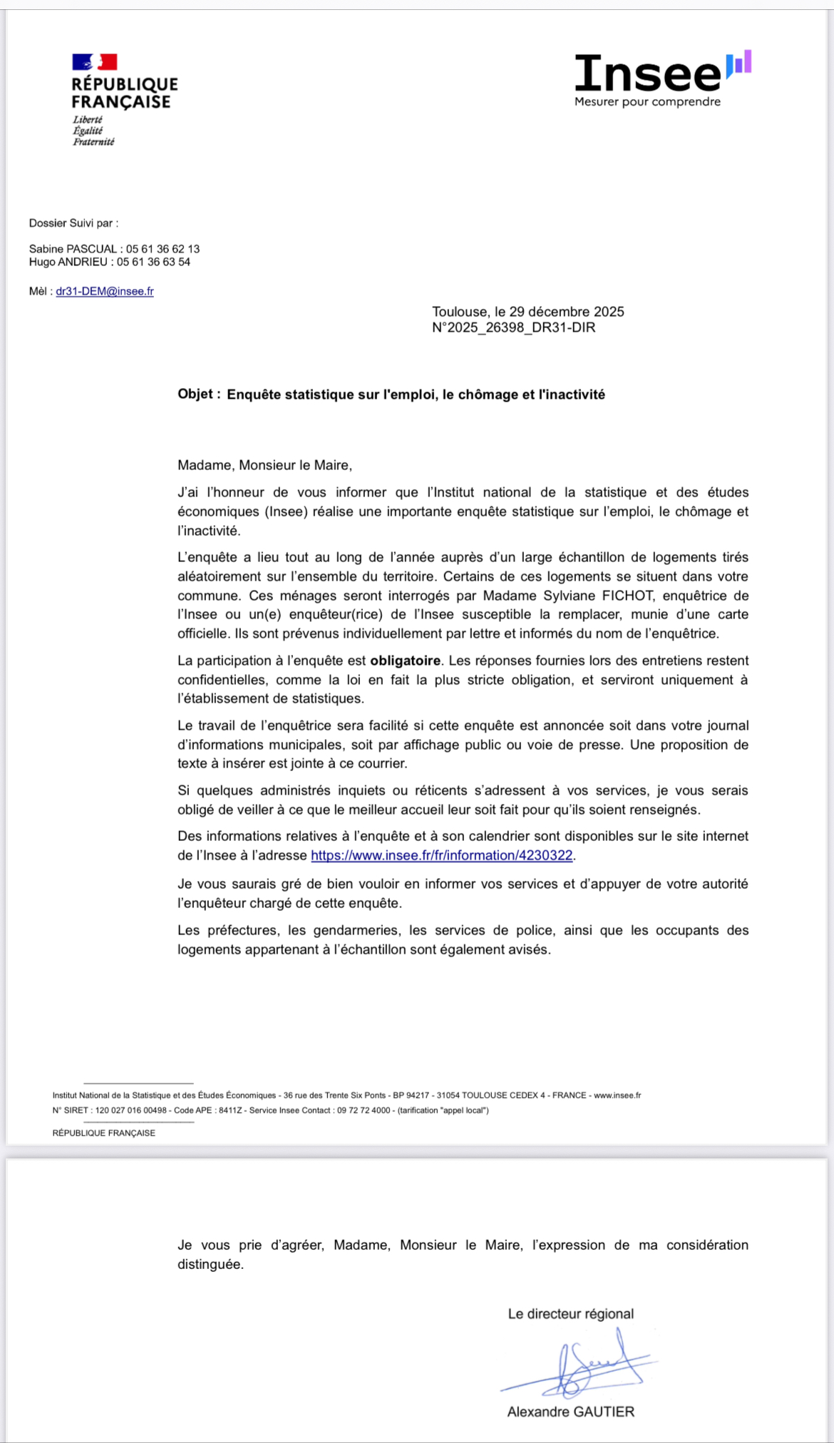 Lettre d'information en document ci-joint
