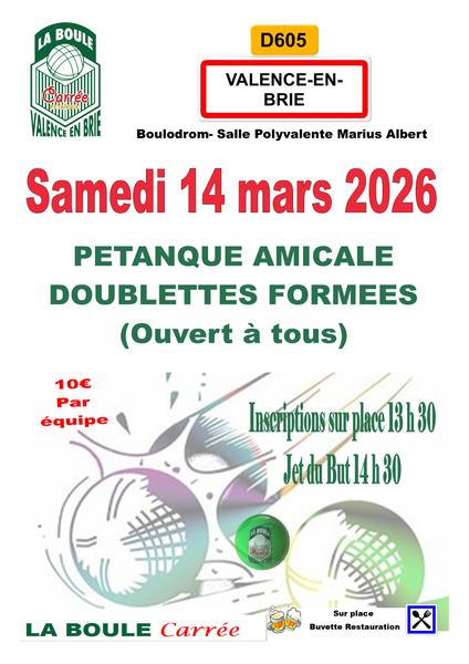 Relevez le défi ! Participez au concours de pétanque amicale, doublettes formées organisé par La Boule Carrée.