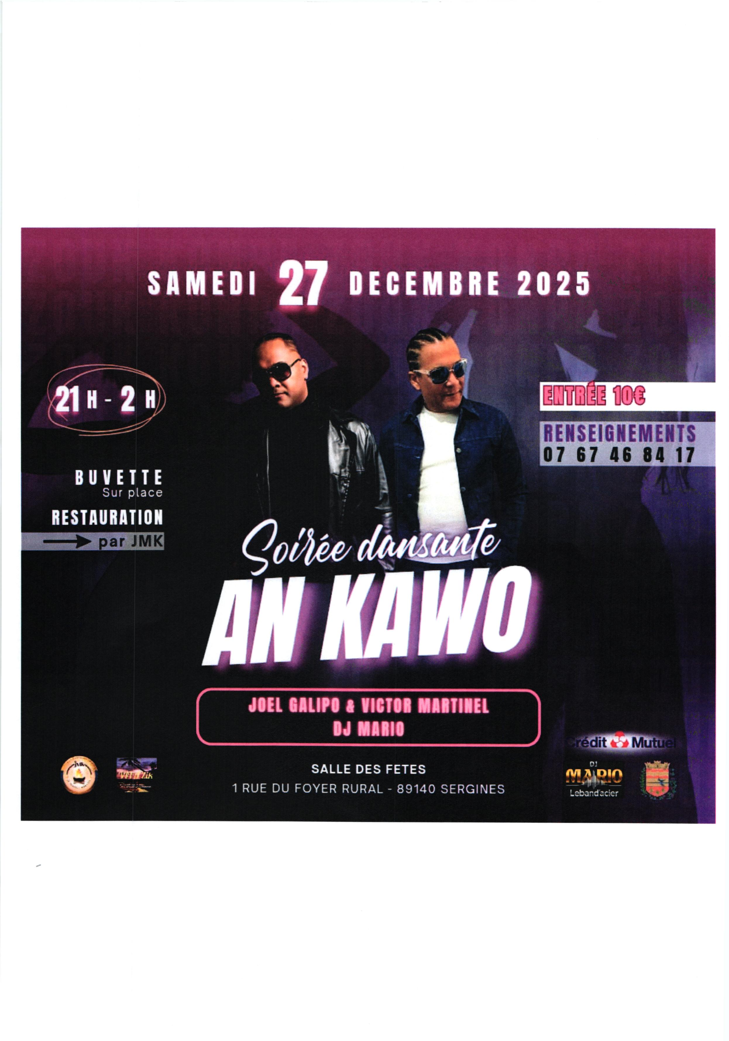 Samedi 27 décembre : 21h00 Soirée Dansante Zouk/Kompa animée par Manuel-DJmariolebandacier Monrose ! Nous aurons également le plaisir d'accueillir Joel Galipo - Victor Martinel. Entrée 10€ et 15€ avec le repas Kréole