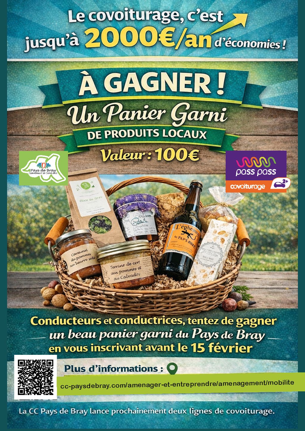 Pour encourager les déplacements partagés, la Communauté de Communes du Pays de Bray,vous propose un jeu-concours 👇