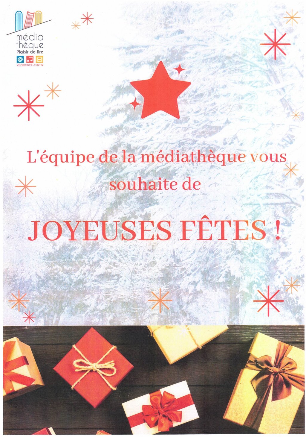 Pendant les fêtes de fin d'année, la médiathèque sera ouverte :