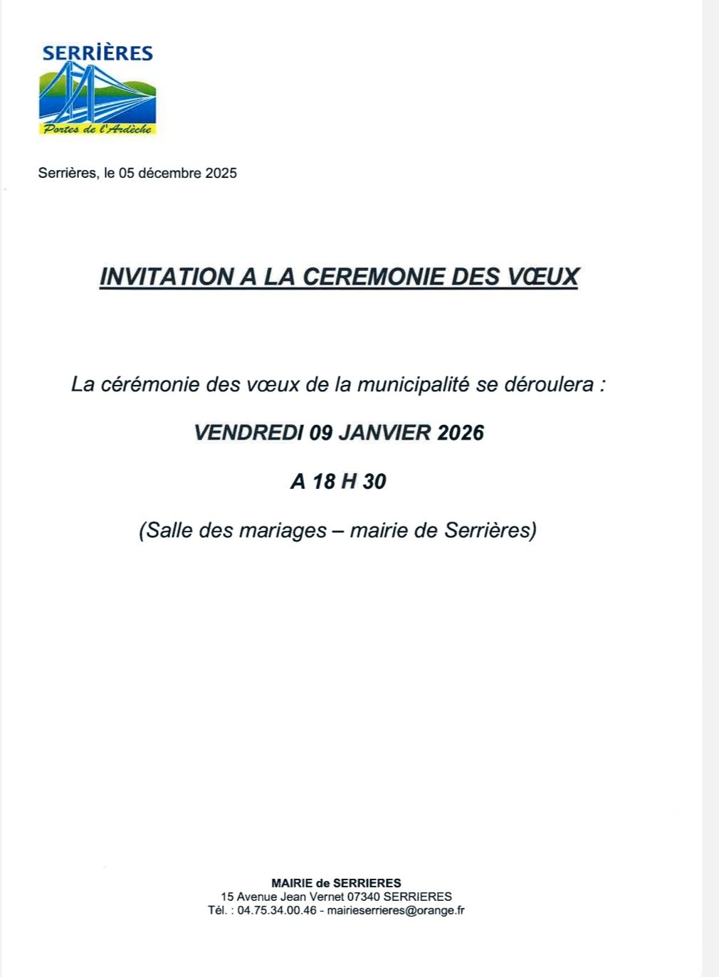 CÉRÉMONIE DES VŒUX MAIRIE DE SERRIÈRES