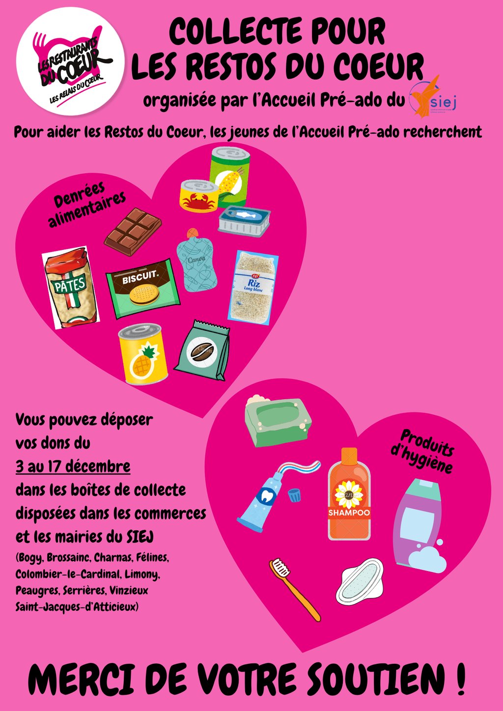 Les jeunes de l’Accueil Pré-ado du SIEJ organisent pour cette fin d’année 2025 une collecte pour soutenir les Restos du Cœur.