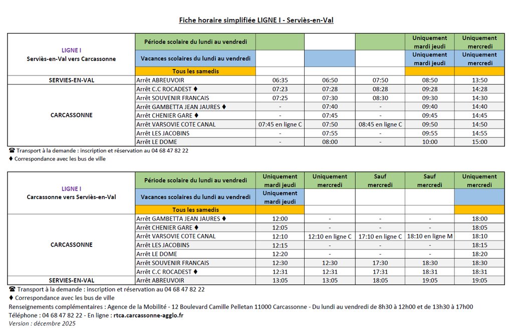 Horaires des bus Ligne I