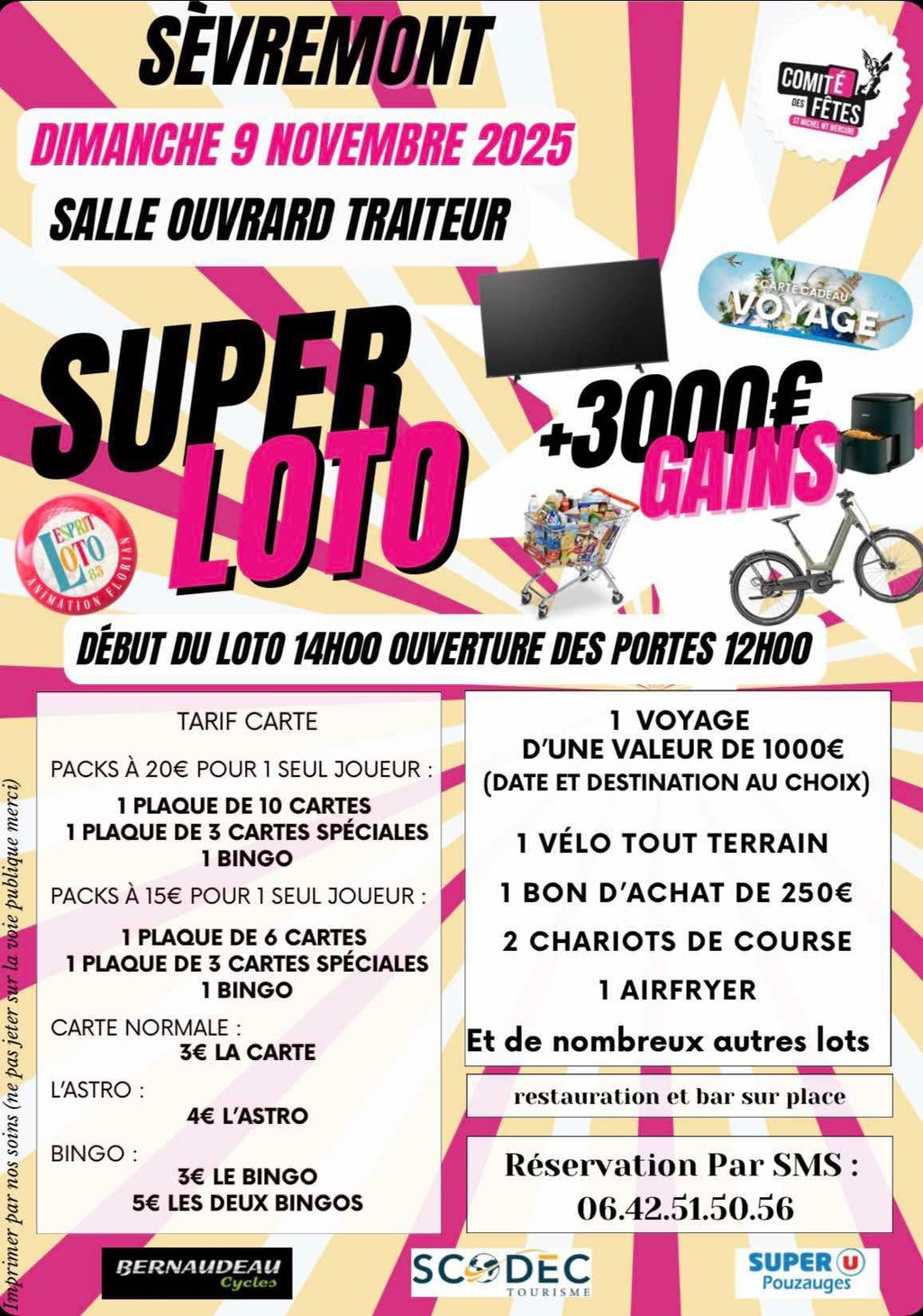 De nombreux lots à gagner : un voyage, bons d’achats, vélo tout terrain, paniers garnis… et bien plus encore !